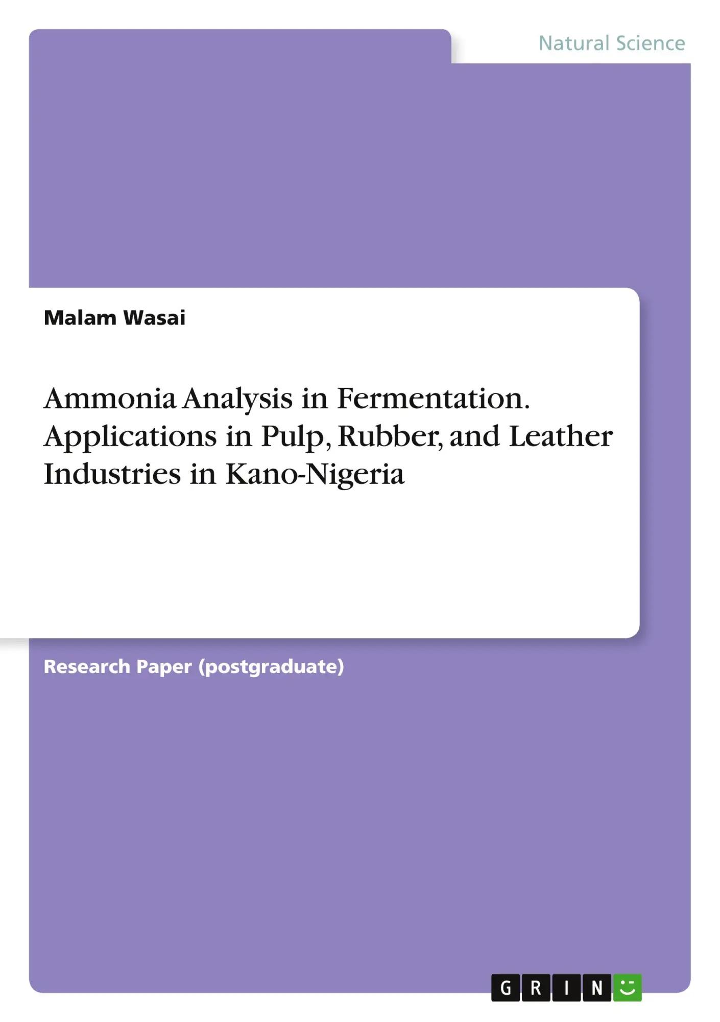 Ammonia Analysis in Fermentation. Applications in Pulp, Rubber, and Leather Industries in Kano-Nigeria