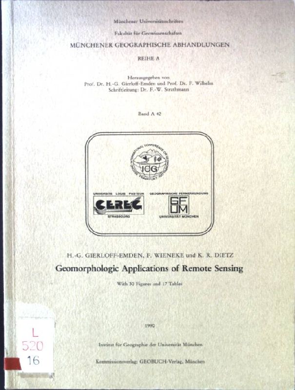 Geomorphologic applications of remote sensing : papers presented at the Post Conference Symposium S 13 "Remote Sensing of the Ecological Environment", (Strasbourg, September 11 - 13, 1989). Münchener geographische Abhandlungen / Reihe A ; Bd. 42; Münchener Universitätsschriften : Fakultät für Geowissenschaften