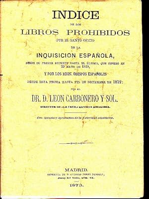 INDICE DE LOS LIBROS PROHIBIDOS POR EL SANTO OFICIO DE LA INQUISICION ESPAÑOLA DESDE SU PRIMER DECRETO HASTA EL ULTIMO, QUE ESPIDI EN 29 MAYO DE 1819, Y POR LOS RDOS, OBISPOS ESPAÑOLES DESDE ESTA FECHA HASTA FIN DE DICIEMBRE DE 1872.
