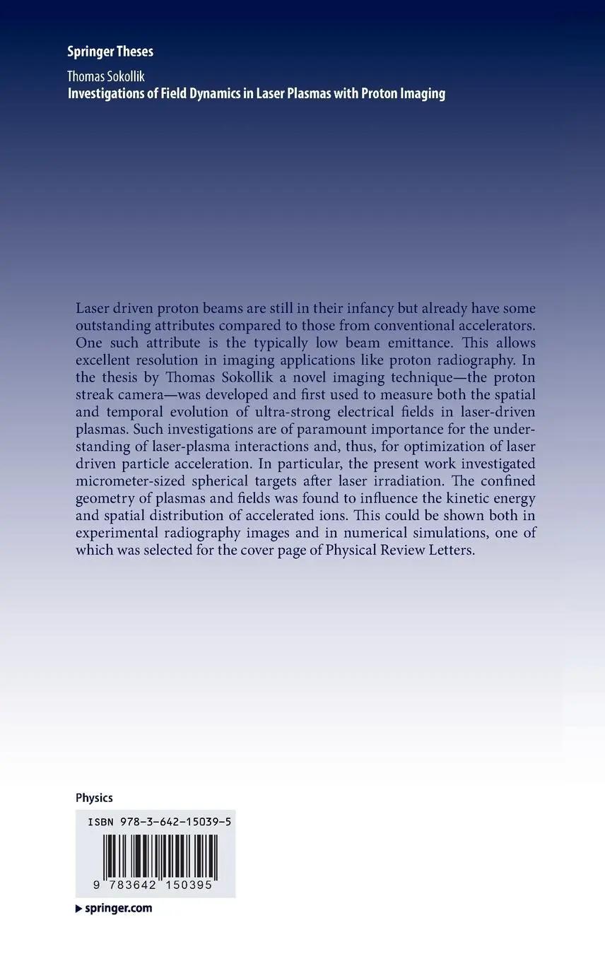 Investigations of Field Dynamics in Laser Plasmas with Proton Imaging | Thomas Sokollik | Buch | xiv | Englisch | 2011 | Springer-Verlag GmbH | EAN 9783642150395 | Verantwortliche Person für die EU: Springer Verlag GmbH, Tiergartenstr. 17, 69121 Heidelberg, juergen[dot]hartmann[at]springer[dot]com | Anbieter: preigu Print on Demand. Codice articolo 107439174
